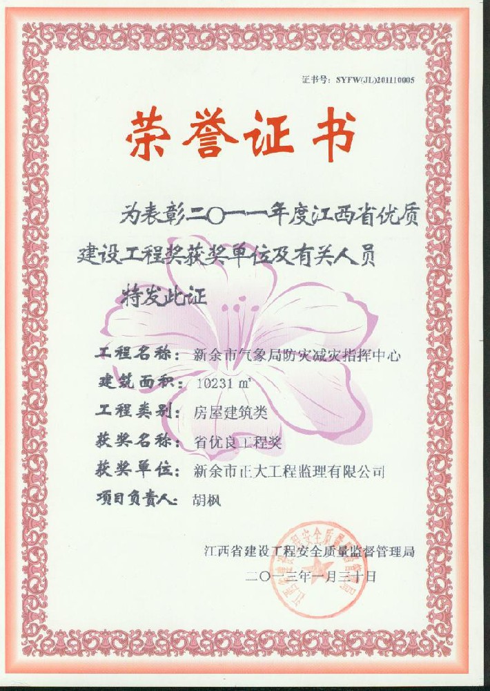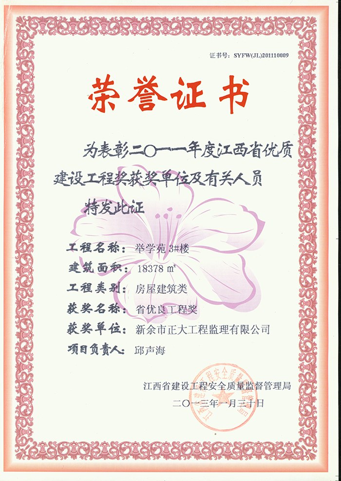 新余市正大工程監(jiān)理有限公司依托新余市建筑設計院,于1995年11月成立,是新余市開展監(jiān)理工作最早的監(jiān)理單位,本公司具有建設部核發(fā)的房屋建筑工程甲級監(jiān)理資質(zhì)、市政公用工程乙級監(jiān)理資質(zhì)、國家人防辦核發(fā)的人防工程監(jiān)理乙級資質(zhì)。我公司始終堅持“客戶至上、質(zhì)量第一、信守合同”的經(jīng)營理念;追求“為社會創(chuàng)造價值、為業(yè)主創(chuàng)造效益、為自身謀求發(fā)展”的經(jīng)營宗旨;遵循“守法、誠信、公正、科學、優(yōu)質(zhì)、高效”的工作原則,以雄厚的技術(shù)力量、完善的管理制度、豐富的監(jiān)理經(jīng)驗、良好的企業(yè)信譽迅速成為我市監(jiān)理行業(yè)的一支新銳力量!